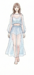 全身に重さがなく、儚げで幻想的な印象を持つタイプです。淡い色使いや空気を含んだようなシルエットで、その繊細さが最大限に引き立ちます。