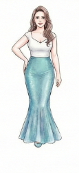 上半身から腰にかけての曲線が美しく、グラマラスな印象を与えるタイプです。下重心のため、重たい服でもバランスを崩しにくく、マーメイドラインやIラインシルエットが特に得意です。女性らしさと大人の色気を自然にまとえるため、体のラインを活かすスタイリングが映えます。