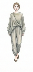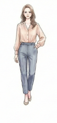 全体に柔らかさがありながら、上重心によって上品な存在感を放つタイプです。とろみ素材やブラウスをインしたスタイルがよく似合い、エレガントさを自然に演出できます。優しさと洗練が共存する骨格です。