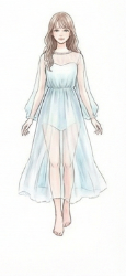 全身に重さがなく、儚げで幻想的な印象を持つタイプです。淡い色使いや空気を含んだようなシルエットで、その繊細さが最大限に引き立ちます。