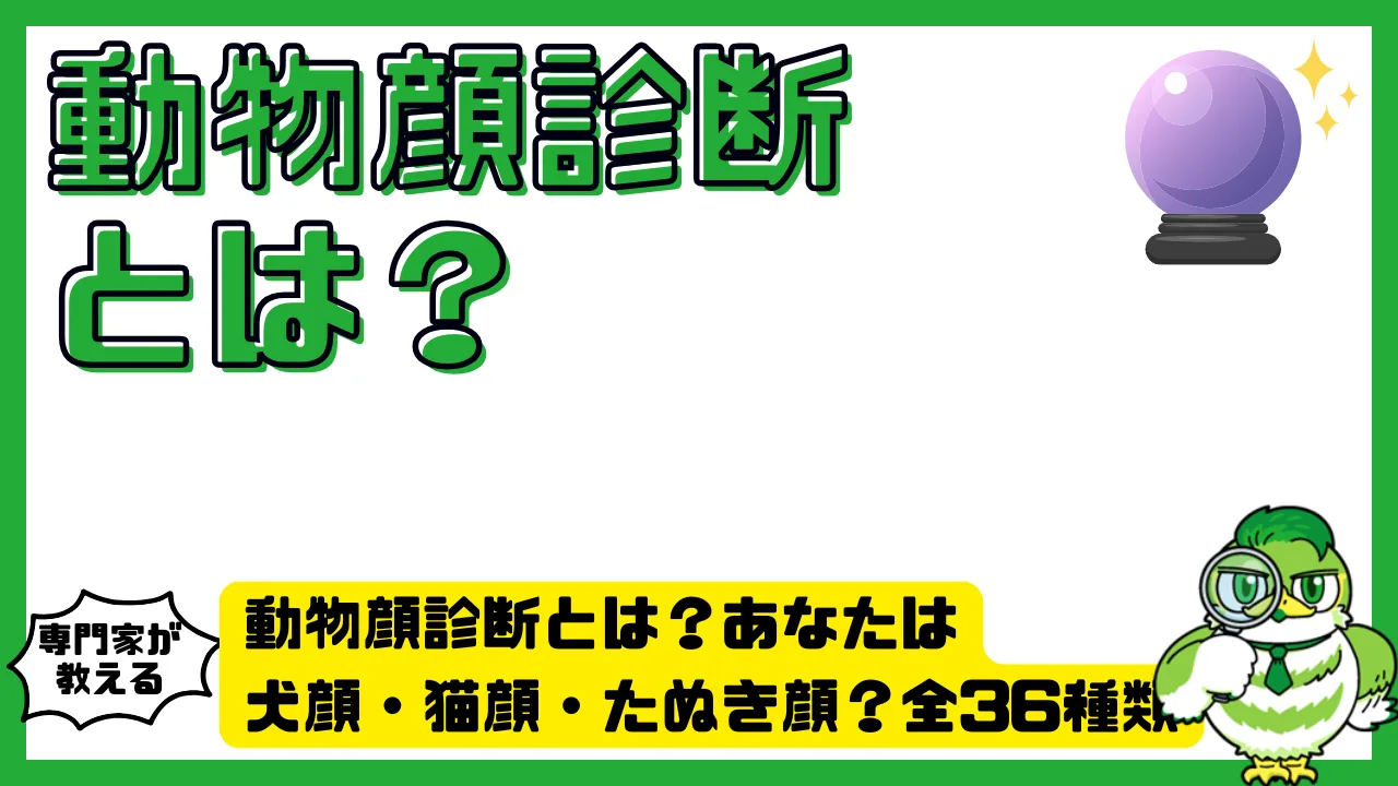 これらを総合的に見て、「犬顔」「猫顔」「たぬき顔」「キツネ顔」「うさぎ顔」などのタイプが導き出されます。