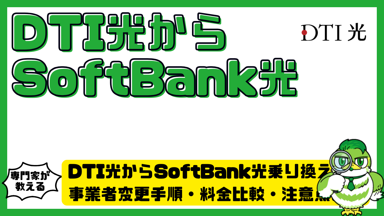 DTI光からSoftBank光への乗り換えでは、通常は事業者変更を選ぶ方が手間・費用ともに少なく済みます。