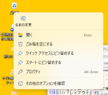 - デスクトップの「ごみ箱」アイコンを右クリック