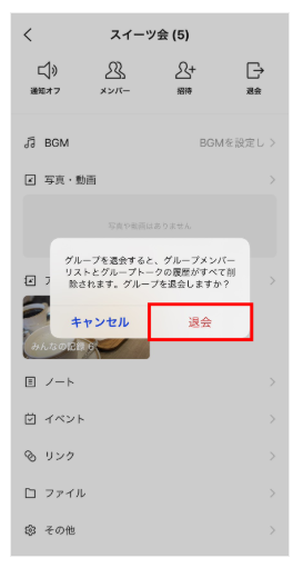 グループトークでは、「退会」と「退出」の両方が表示される可能性があります。自分で抜ければ退会、アカウント削除などで自動的に外れれば退出という使い分けです。