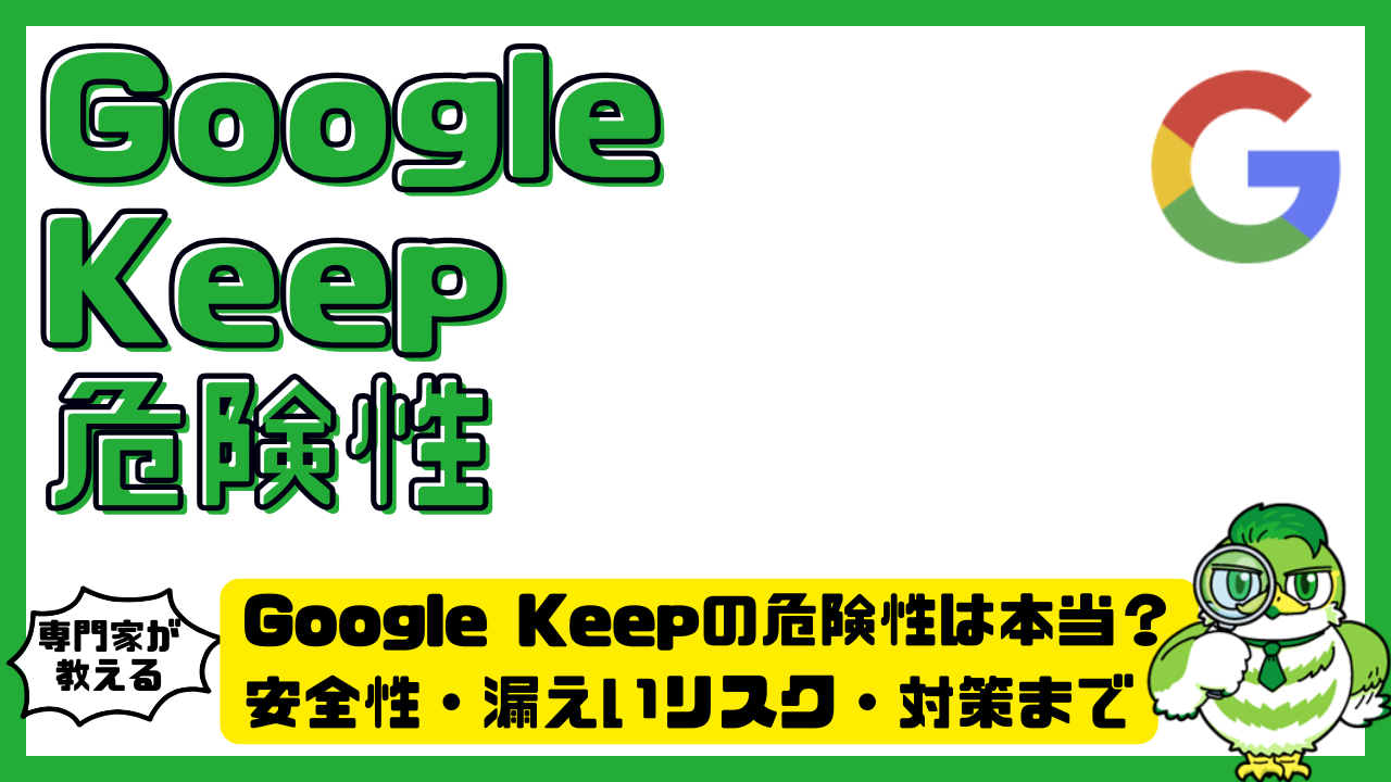 Google Keepの危険性は「サービス自体が危険」というより、「無防備に使うとリスクが上がる」という性質のものです。