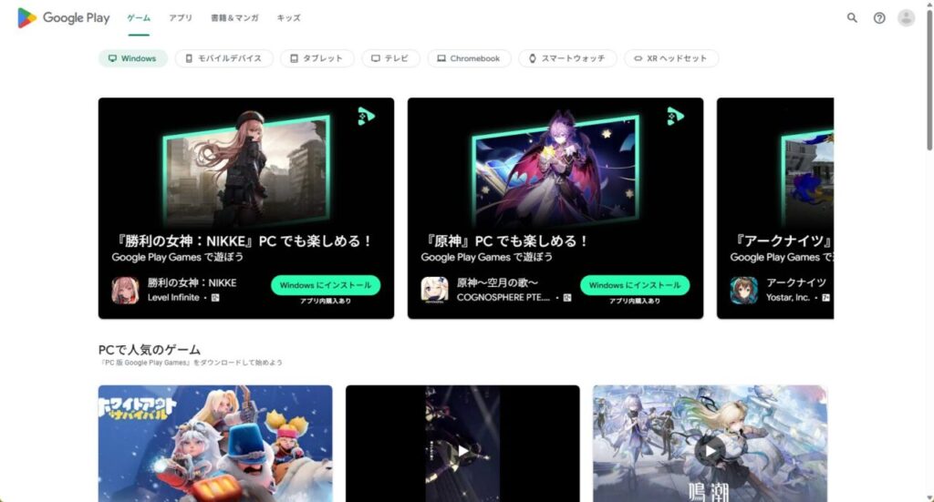 アプリやゲームを探してインストールできる