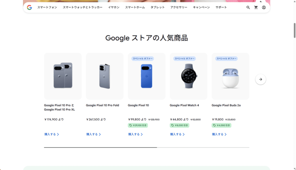 家電量販店やECサイトでもGoogle製品は購入できますが、GoogleStoreは「メーカー公式の購入窓口」という位置付けです。新製品の発売、キャンペーン、下取りなどの仕組みが一体化しており、Google製品を安心して購入したいユーザーにとって基本となる購入ルートになっています。