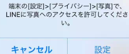 この場合、LINEに不具合があるわけではなく、スマホ側が「写真を見せない」状態になっているため、送信できなくなります。