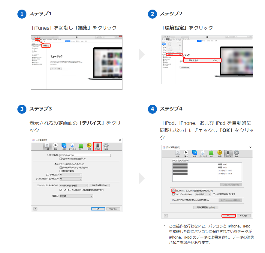 - 操作中に誤って削除・上書きしてしまう可能性があります