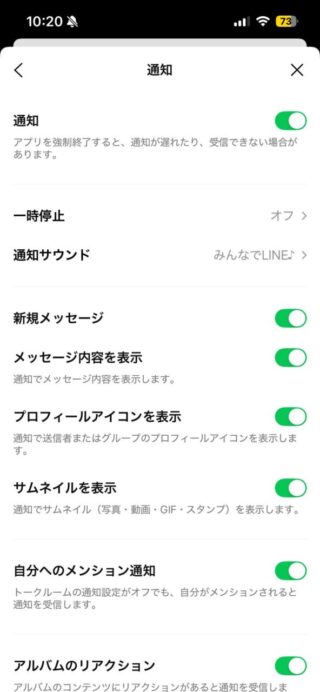 - 集中モードやおやすみモードでLINEが制限されていないか