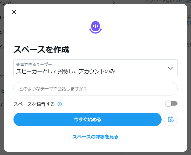 スペースアーカイブを残す基本は、配信開始時の録音設定です。操作自体は数秒で終わります。