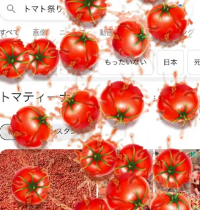 - 投げたトマトが画面内を飛び回り、検索結果や画像などを赤く染める演出が楽しめます。