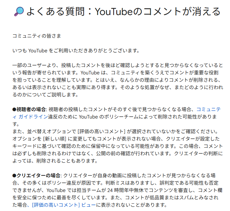 YouTubeで特定の人のコメントが表示されない時に多い状況