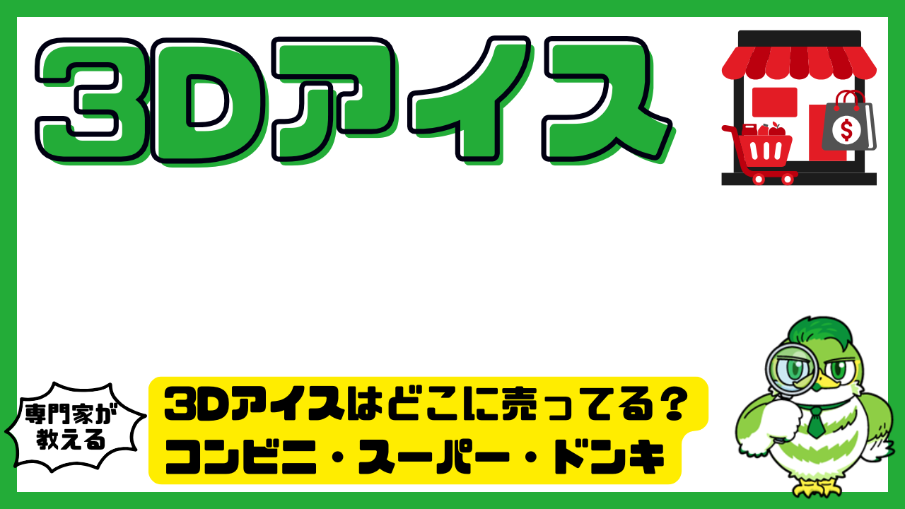 3Dアイスは、コンビニ、スーパー、ドン・キホーテ、通販で探せる可能性があります。ただ、最も見つけやすいのは大型スーパー、次にドン・キホーテ、コンビニはタイミング次第、通販は割高でも確保したい人向けという整理が実用的です。