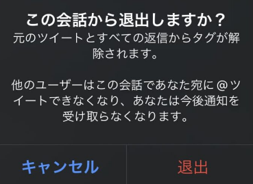 x(twitter)の「この会話から退出」は、リプライスレッドに含まれている自分のメンションを解除し、その会話から実質的に離脱できる機能です。